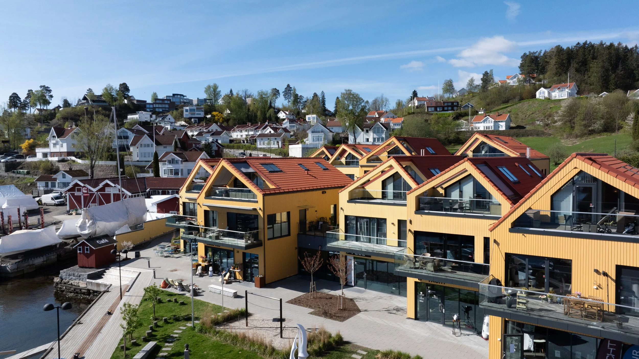 Helt nede ved sjøkanten i Vollen ligger det 17 flotte leiligheter med fjorden som nærmeste nabo. Boligkomplekset er brutt opp i mindre saltaksvolum for å tilpasse seg den eksisterende Vollenbebyggelsen. På bakkeplan etableres det næringslokaler og serveringsted, som sammen med offentlige uteområder vil bidra til å åpne opp marinaen for allmenheteten.