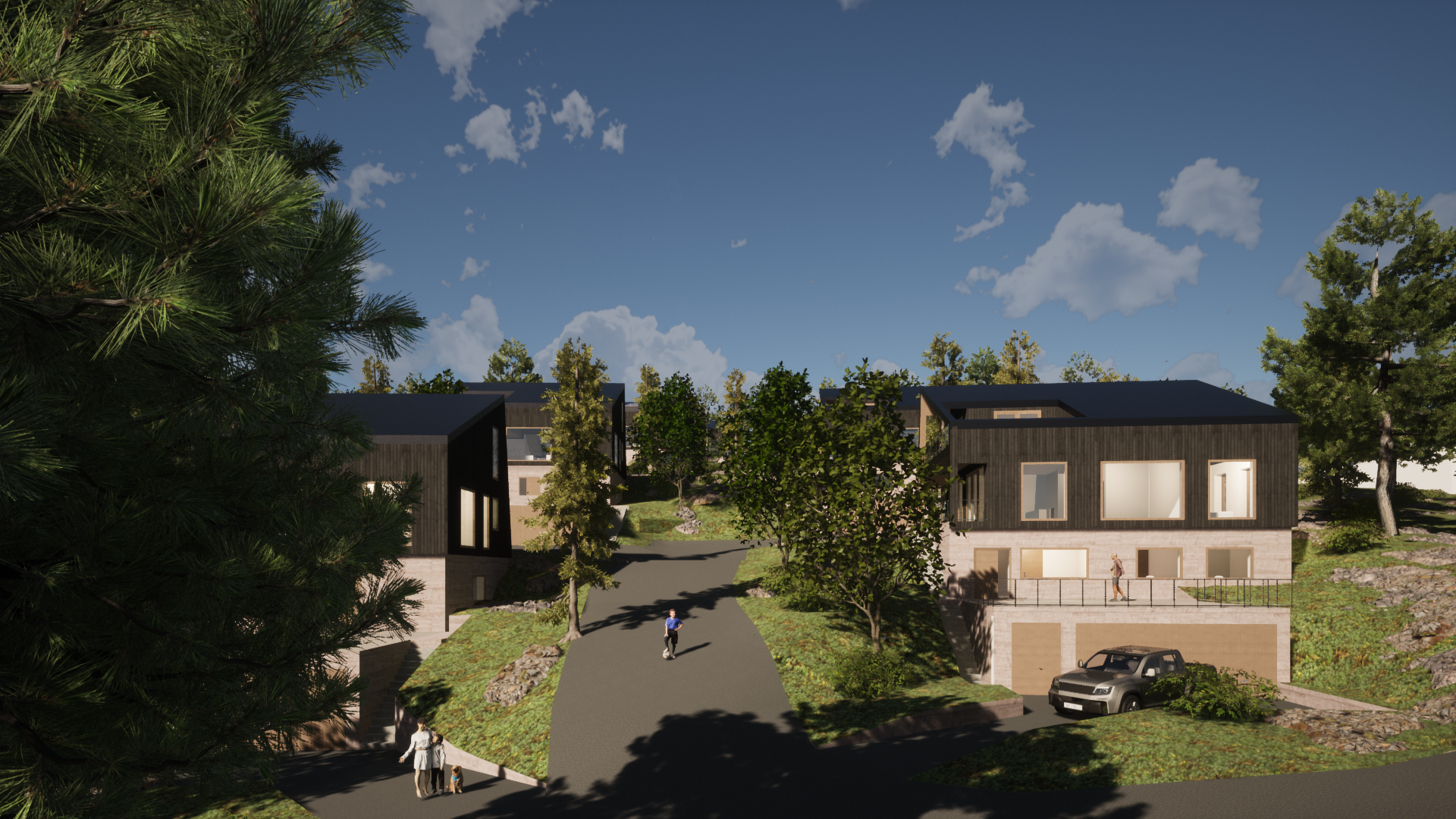 Denne eiendommen ligger med flott utsikt mot Rødåsen og Heggedal. Den foreslåtte arkitekturen legges opp til å være særegen, men samtidig henspille på tradisjonell byggeskikk i området. Hver av tomtene skal utvikles med enebolig og tilhørende garasje.