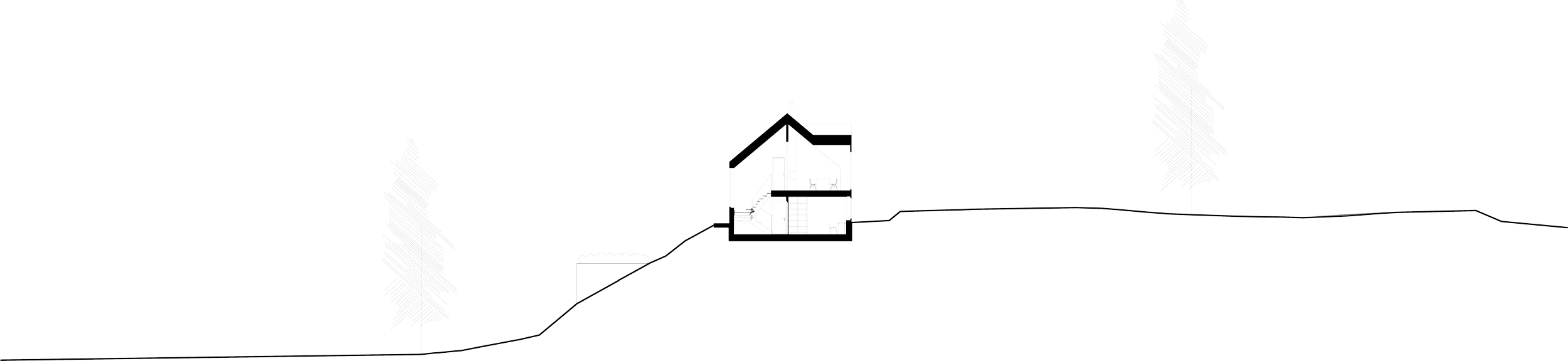 Samtidig har eiendommen adkomst fra fellesveien i nord, omtrent 7 høydemeter nedenfor høydedraget. Terrenget på denne delen av eiendommen er bratt og egnet seg derfor ikke som uteoppholdsareal. Løsningen ble å plassere boligen inn i skåningen nord på eiendommen, slik at øvre plan ble liggende med direkte utgang til de solfylte og gode utearealene oppe på høydedraget. Plasseringen demper boligens fremtoning, gir bedre avstand til eksisterende nabobebyggelse og mer uteareal mot sør.