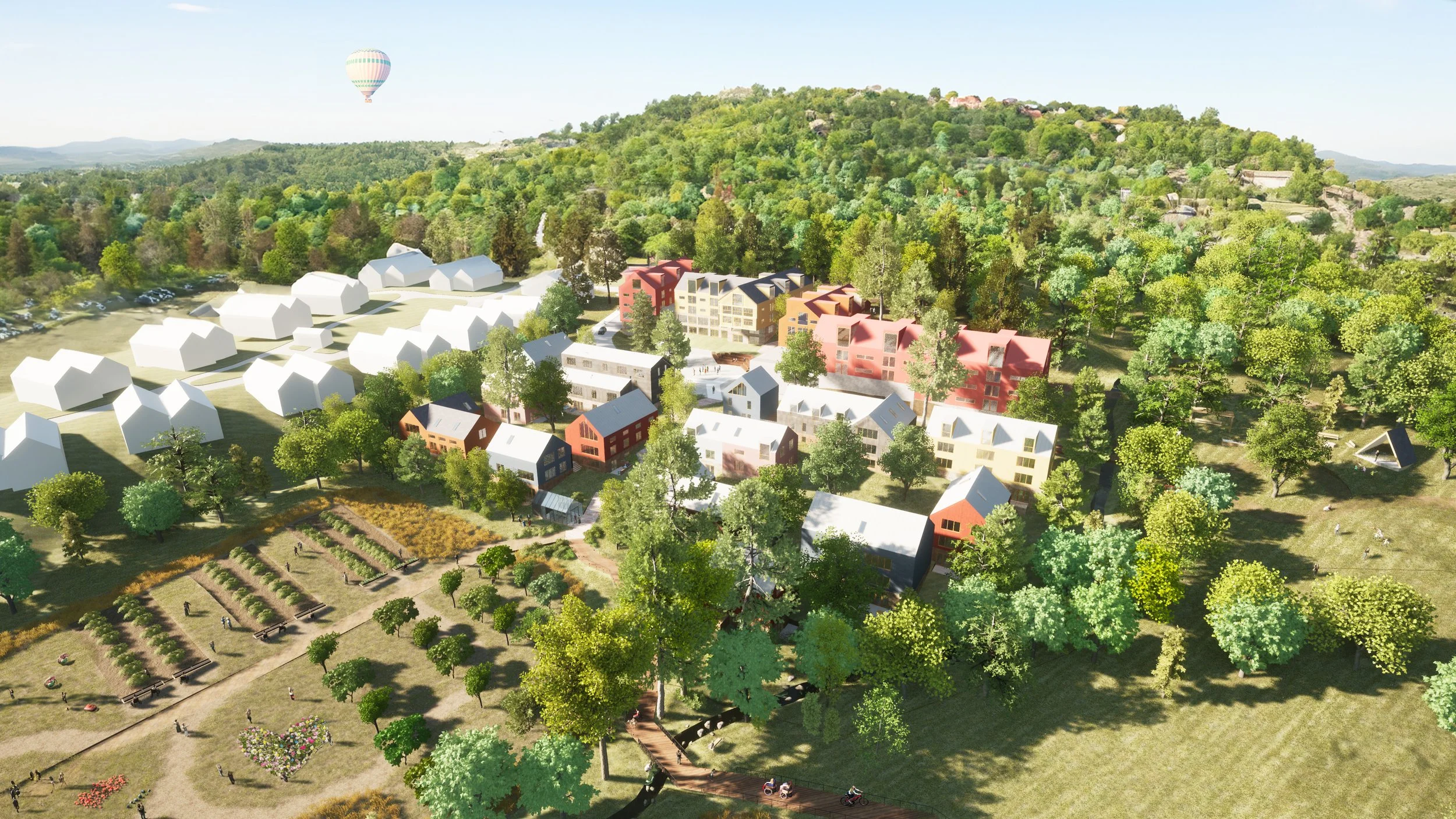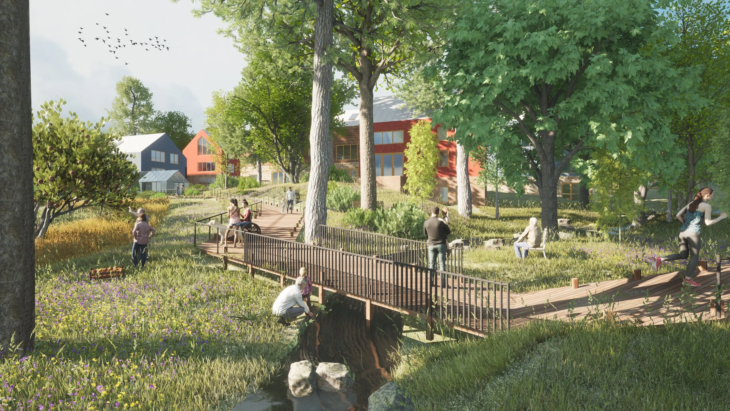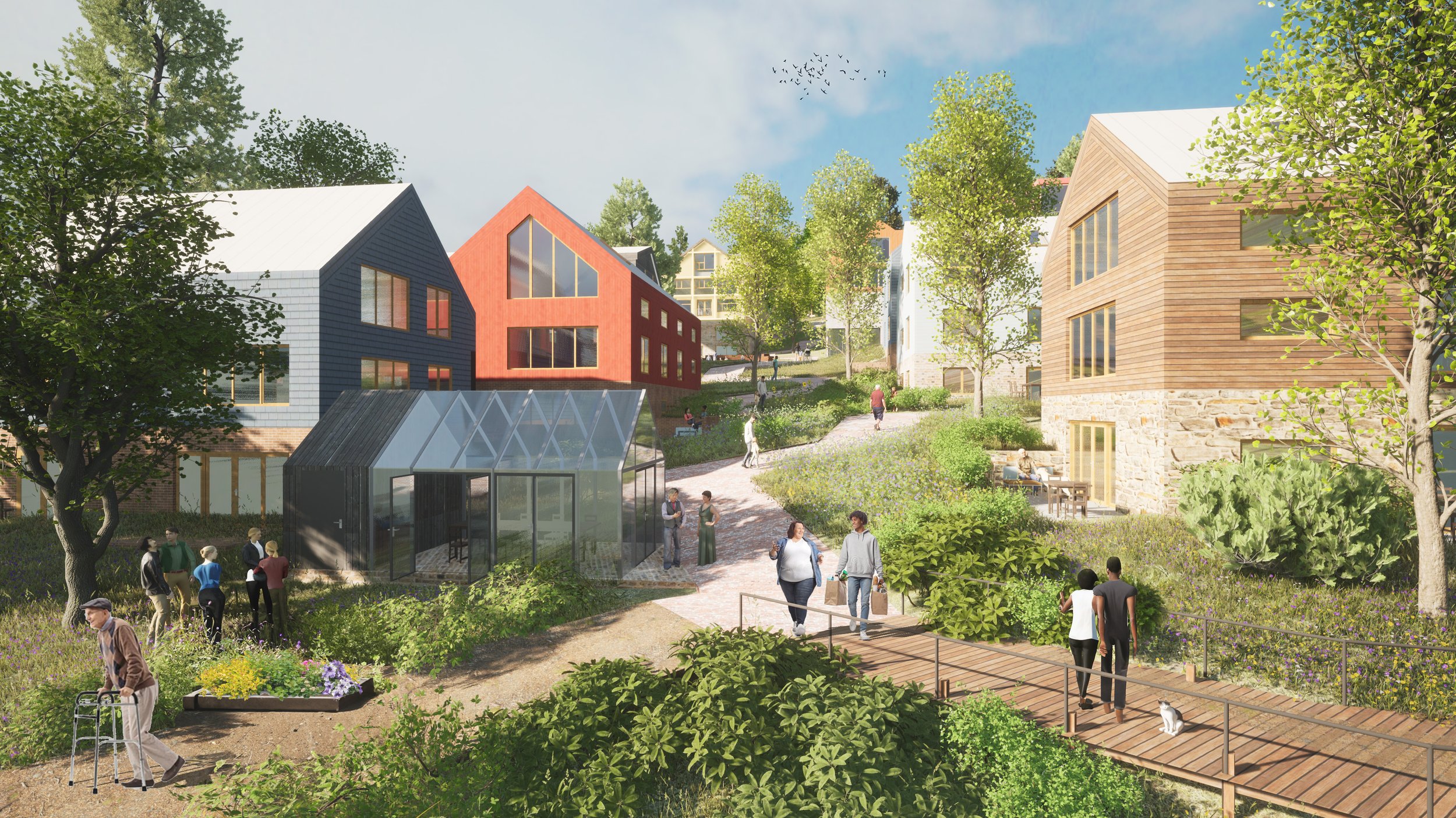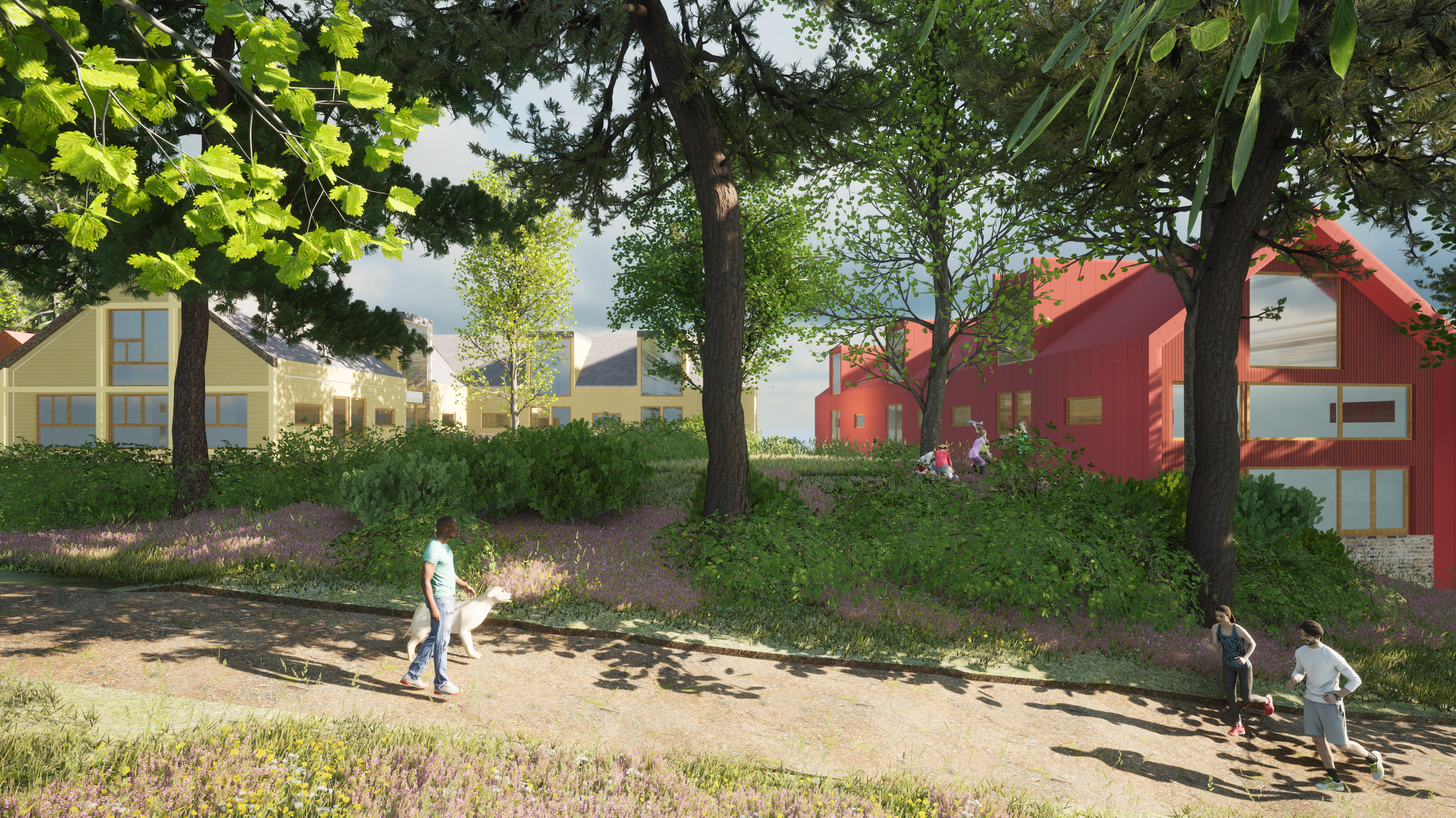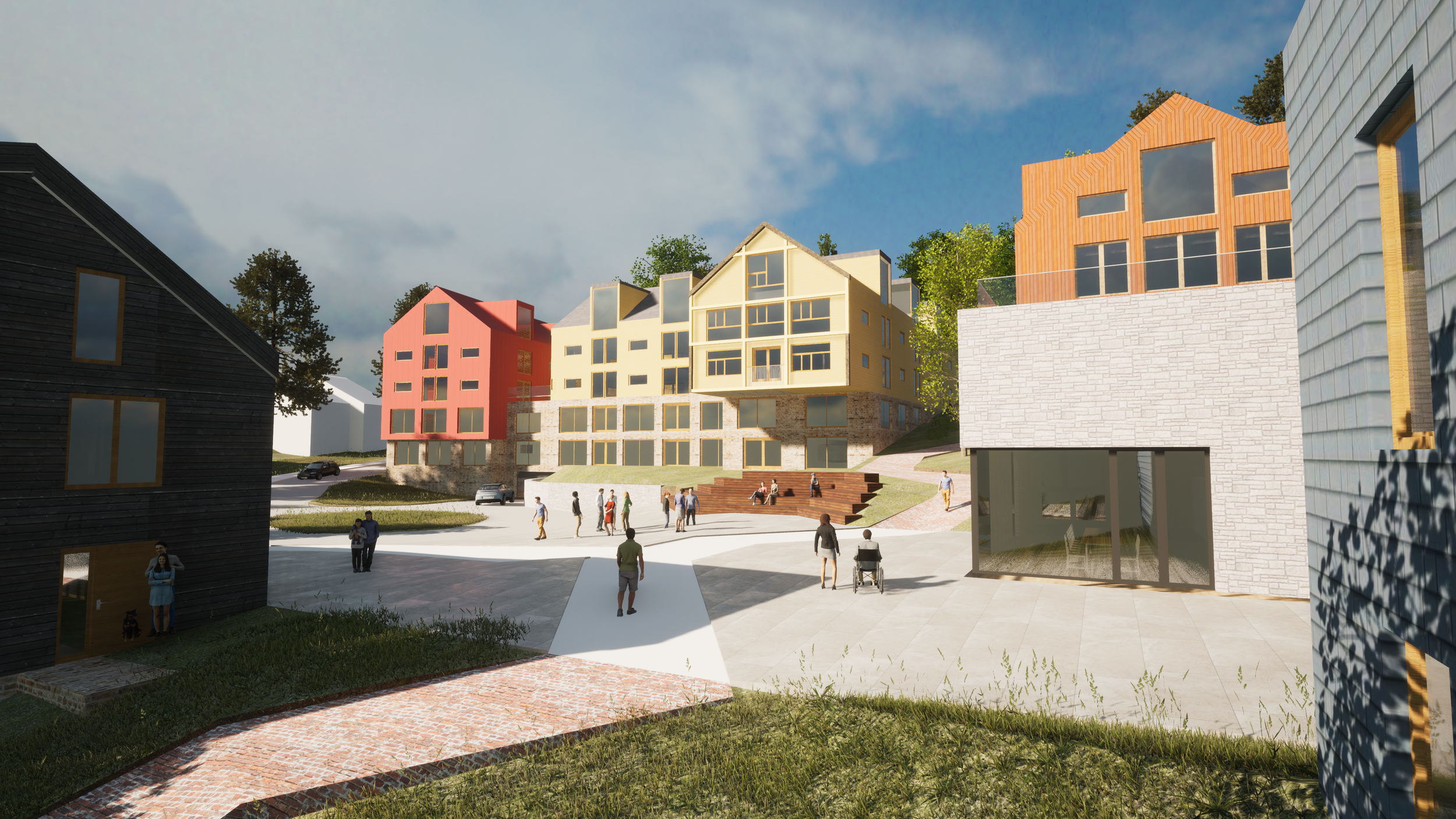 Bebyggelsen er inspirert av eldre gårdsbebyggelse, de fine uterommene man finner mellom dem, og deres variasjon i størrelser og plassering. Bebyggelsen er organisert rundt fire forskjellige tun, som fungerer som sosial møteplass. Bebyggelsen rundt de to tunene lengst vest har en form inspirert av låver, og er planlagt med en enhet for heldøgns omsorg i det ene tunet og et aktivitetssenter i det andre tunet. De to tunene lengst øst har småhustypologi og rommer i hovedsak leiligheter.