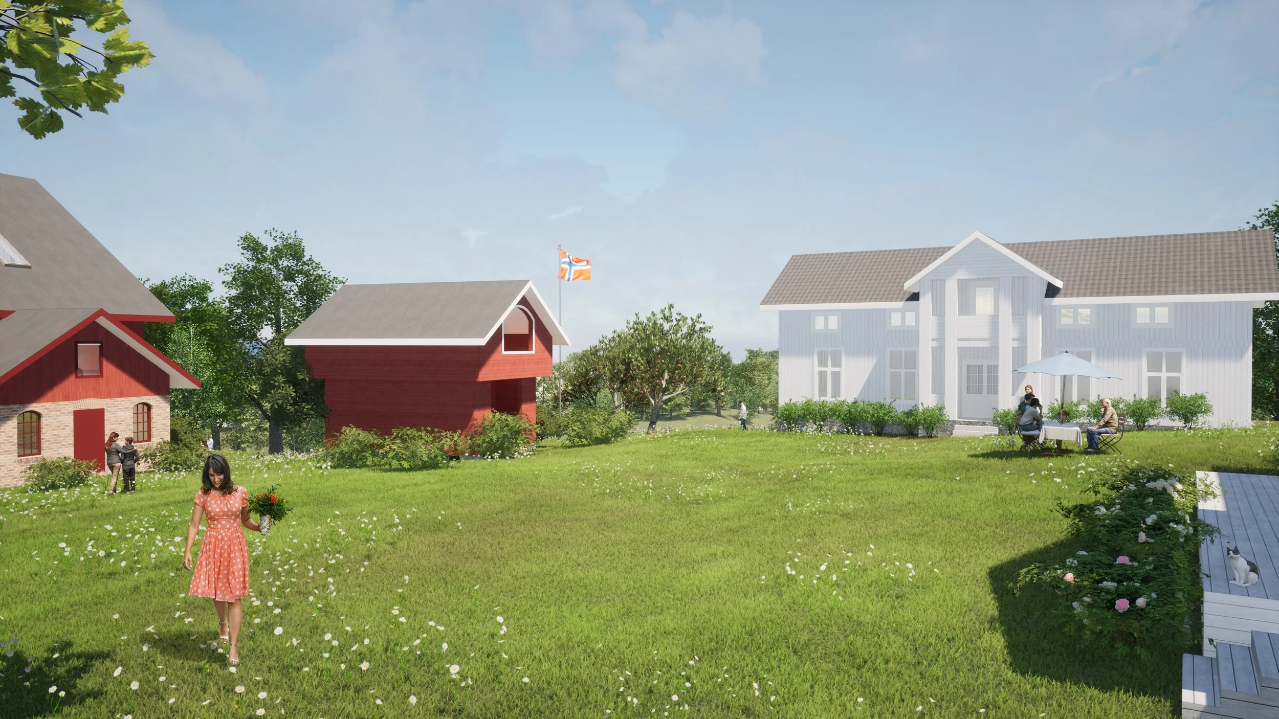 Se for deg en tidlig sommermorgen på Gisle Gaard; duggperler i gresset, barneføtter som flyr over plenene, sommerkjoler som danser i brisen. Latteren bærer over tunet, og utsikten mot sjøen ligger vid og blå under en sol som finner hver eneste krok. Det er litt Emil i Lønneberget over stemningen; rampestreker, jordbærfingre og et vennlig nikk fra naboen som plukker epler. Epler fra de unge trærne som er plantet til minne om eplehagen som en gang var.
